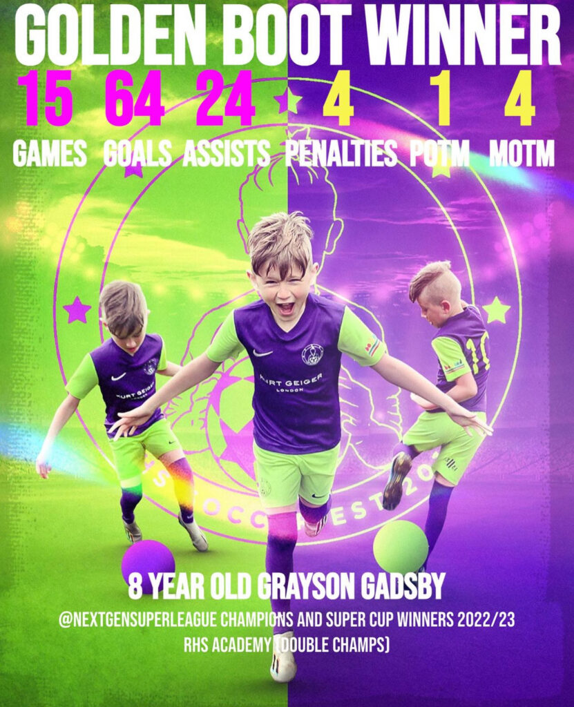 This seasons golden boot and assist winner is Grayson Gadsby. A prolific season at the Next Gen Super League. A remarkable achievement considering he played as a right back for the majority of the season.